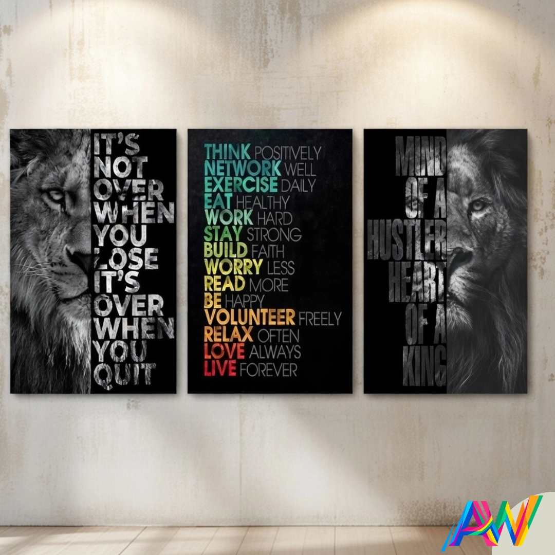 Designed to inspire productivity and mindset, these motivational wall art frames feature powerful quotes printed in high-quality finish on a durable wooden-backed sticky canvas format.
